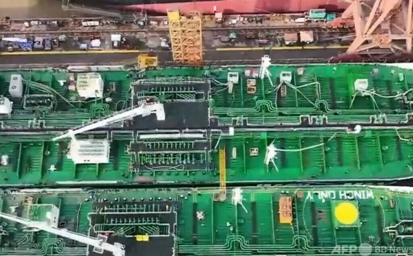 中国船舶工業協会の統計によれば、昨年は船舶用代替燃料として石油の代わりにメタノールを使う傾向が顕著で、新規に建造されたメタノール燃料船は通年で43隻に上りました。クリーンエネルギー燃料船の市場シェアだけを見ても、世界中で新規に発注されたクリーンエネルギー船は2021年の30%から昨年12月時点では51%に上昇しているということです。(c)CGTN Japanese/AFPBB News