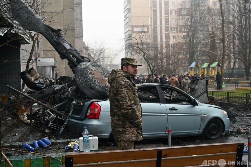 【1月18日 AFP】(更新、写真追加)ウクライナの首都キーウ近郊で18日、幼稚園の近くにヘリコプターが墜落し、乗っていたデニス・モナスティルスキー(Denys Monastyrsky)内相(42)を含む政府高官ら14人が死亡した。
