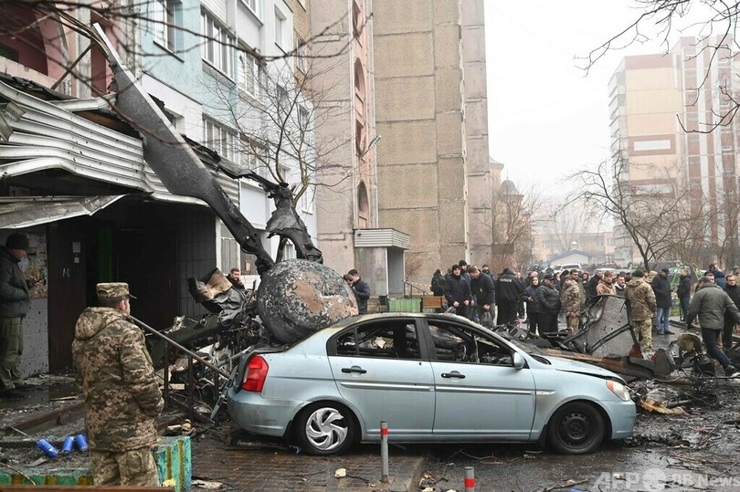 【1月18日 AFP】(更新、写真追加)ウクライナの首都キーウ近郊で18日、幼稚園の近くにヘリコプターが墜落し、乗っていたデニス・モナスティルスキー(Denys Monastyrsky)内相(42)を含む政府高官ら14人が死亡した。