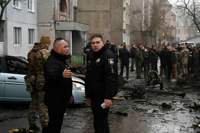 【1月18日 AFP】(更新、写真追加)ウクライナの首都キーウ近郊で18日、幼稚園の近くにヘリコプターが墜落し、乗っていたデニス・モナスティルスキー(Denys Monastyrsky)内相(42)を含む政府高官ら14人が死亡した。
