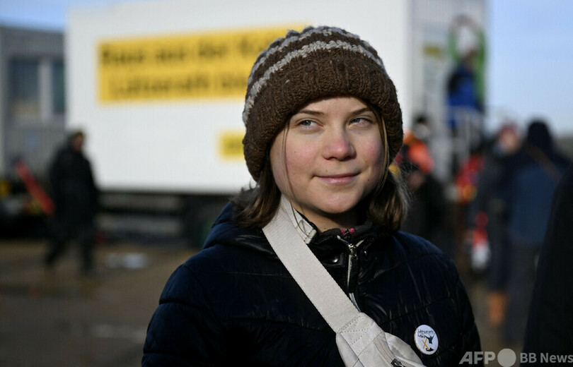 トゥンベリさんは前日、独西部リュッツェラート(Luetzerath)村で、デモを離れて露天掘り炭鉱に向かって走りだしたため身柄を拘束された。
