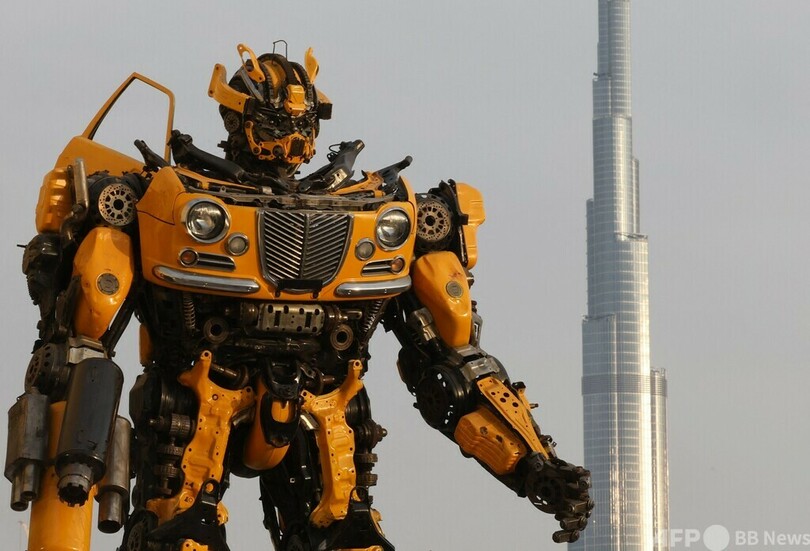 【1月30日 AFP】アラブ首長国連邦(UAE)のドバイ(Dubai)にこのほど、世界一高い建築物「ブルジュ・ハリファ(Burj Khalifa)」を背に立つ映画「トランスフォーマー(Transformer)」シリーズ風巨大ロボットが登場した。(c)AFP