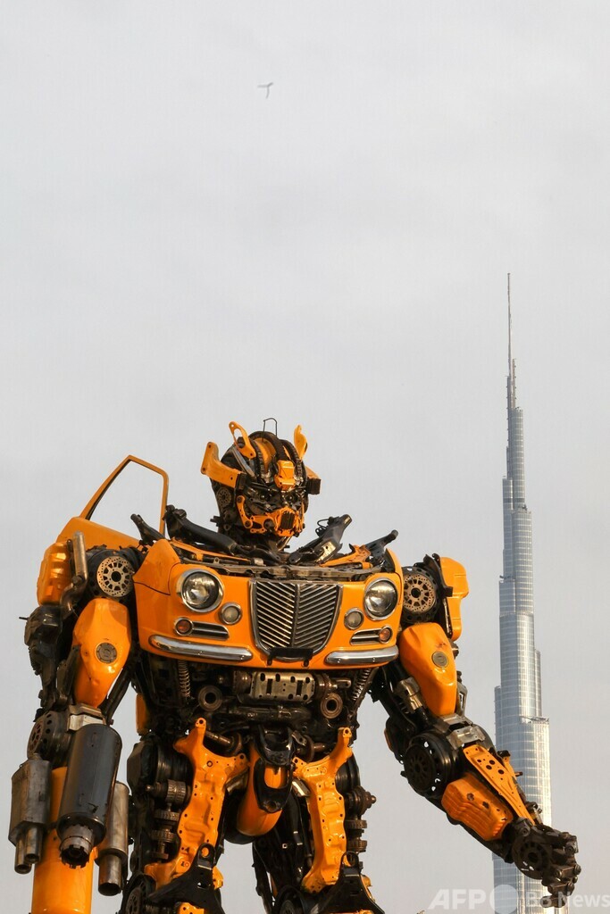 【1月30日 AFP】アラブ首長国連邦(UAE)のドバイ(Dubai)にこのほど、世界一高い建築物「ブルジュ・ハリファ(Burj Khalifa)」を背に立つ映画「トランスフォーマー(Transformer)」シリーズ風巨大ロボットが登場した。(c)AFP
