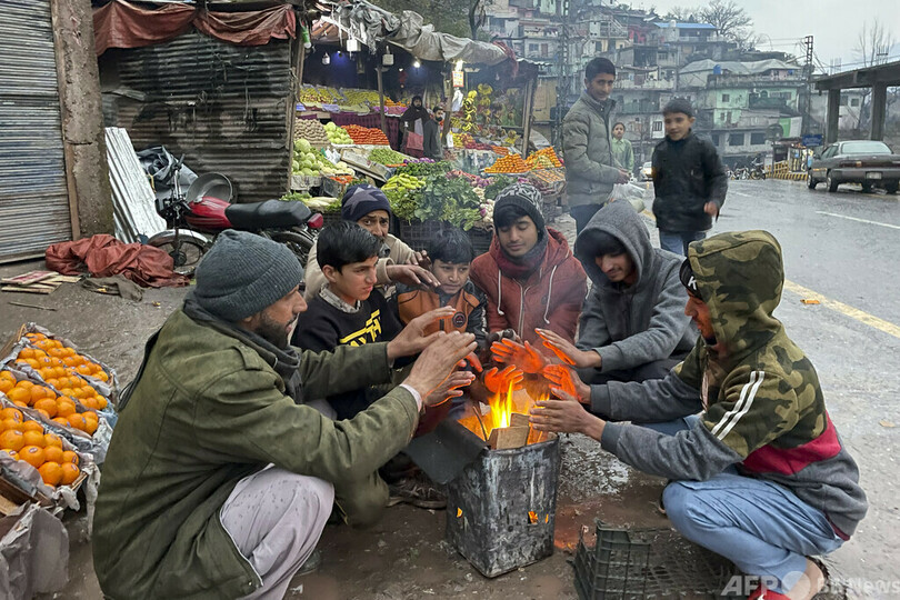 【今日の1枚】店番中にたき火、寒さに耐えかね パキスタン