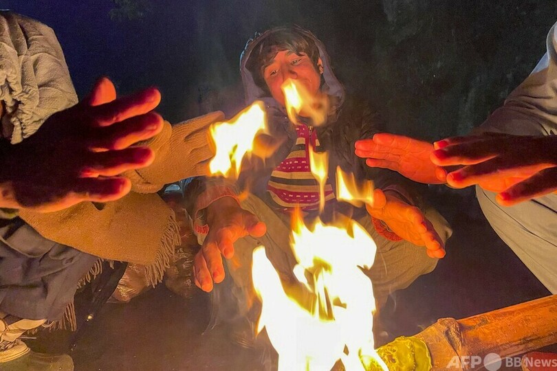 【今日の1枚】店番中にたき火、寒さに耐えかね パキスタン