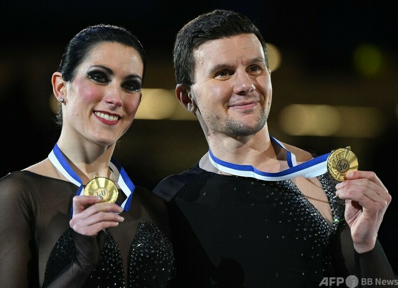 北京冬季五輪で金メダルを獲得したフランスのガブリエラ・パパダキス(Gabriella Papadakis)/ギヨーム・シゼロン(Guillaume Cizeron)組が休養し、ロシア勢が出場停止の中で、英国のライラ・フィアー(Lilah Fear)/ルイス・ギブソン(Lewis Gibson)組が合計207.89点で2位、フィンランドのユーリア・トゥルッキラ(Juulia Turkkila)/マティアス・ベルスルイス(Matthias Versluis)組が198.21点で3位に入った。(c)AFP