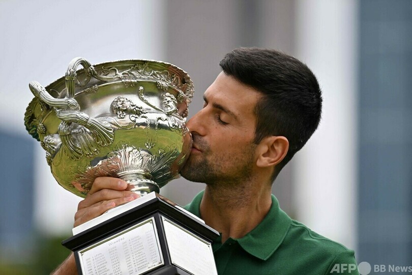 ジョコビッチは前日の決勝でステファノス・チチパス(Stefanos Tsitsipas、ギリシャ)を6-3、7-6(7-4)、7-6(7-5)で下し、史上最多タイとなる四大大会(グランドスラム)通算22回目の優勝を飾った。(c)AFP