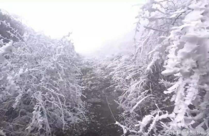 樹氷の形成には十分な低温と水蒸気が必要です。玉渓市江川区は亜熱帯の半乾燥の高原モンスーン気候に属し、四季は春のようで、樹氷は珍しい現象です。(c)CGTN Japanese/AFPBB News