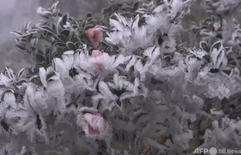 樹氷の形成には十分な低温と水蒸気が必要です。玉渓市江川区は亜熱帯の半乾燥の高原モンスーン気候に属し、四季は春のようで、樹氷は珍しい現象です。(c)CGTN Japanese/AFPBB News