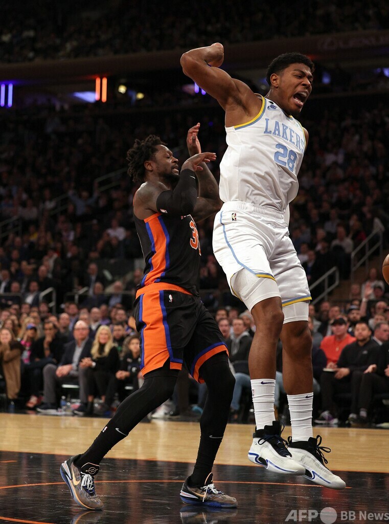 ウェストブルックの見事なアシストからデイビスがダンクを決めて123-118とリードを奪ったレイカーズは、その後八村がジェイレン・ブランソン(Jalen Brunson)のシュートを見事にブロック。その後も得点を重ねてレイカーズがリードを守り切った。