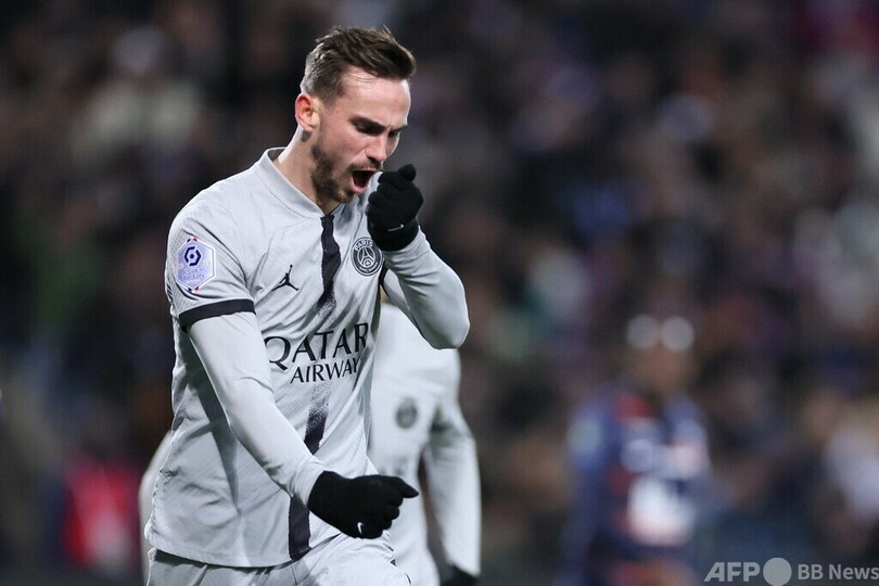 その他の試合では、2位ランス(RC Lens)が0-1でニース(OGC Nice)に敗れ、ナント(FC Nantes)を2-0で下したオリンピック・マルセイユ(Olympique de Marseille)がランスを抜いて2位に浮上。この結果、PSGはリードを3ポイントから5ポイントに広げている。(c)AFP/Andy SCOTT