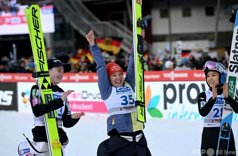 優勝は地元ドイツのカタリナ・アルトハウス(Katharina Althaus)。スロベニアのエマ・クリネツ(Ema Klinec)が2位に続いた。(c)AFP
