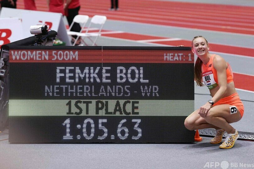 【2月5日 AFP】陸上の世界室内ツアー・ゴールド(World Athletics Indoor Tour Gold)は4日、米マサチューセッツ州ボストン(Boston)で行われ、女子500メートルではフェムケ・ボル(Femke Bol、オランダ)が1分5秒63の世界最高を記録した。