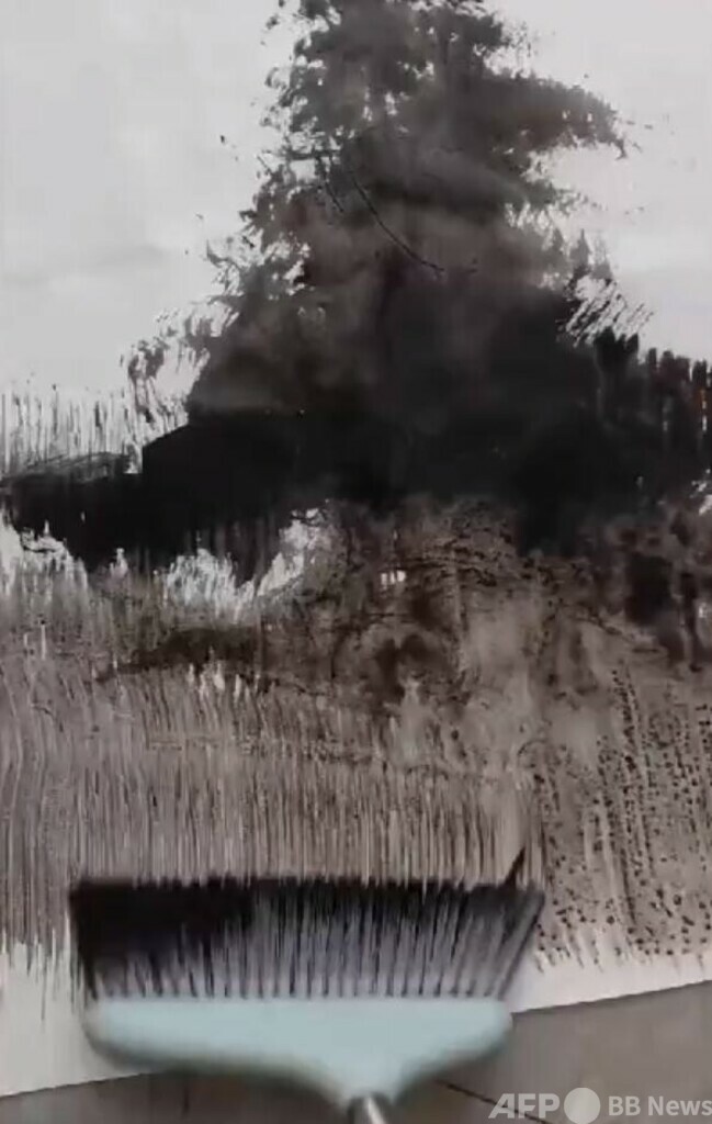 胡さんは幼い頃から武侠小説やドラマに影響を受け、「武侠への憧れ」を抱いていました。高校から絵画を学び始め、最初は油絵で武侠の世界を表現しようと思いましたが、中国の水墨画が武侠の境地を最も表現できると考えるようになりました。靴ブラシやほうき、トイレットペーパーなど日常の至る所にあるものを筆にして絵を描いています。胡さんは「僕にとってはむしろペンよりも日用品で描く方がやりやすい」と話しています。1枚の絵を仕上げるのに30~40分かかるとのことです。(c)CGTN Japanese/AFPBB News