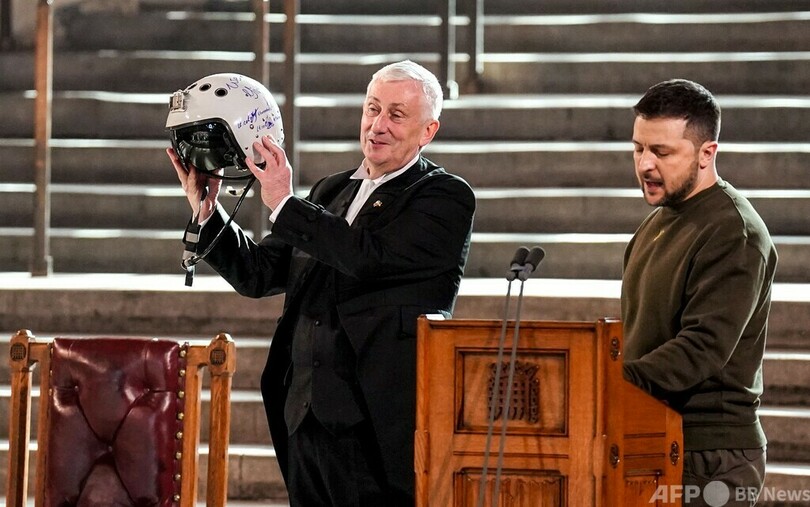 ゼレンスキー氏の外国訪問は、ロシアの侵攻が始まって以降で2度目。英議会で演説した同氏は、「ウクライナのための戦闘機、自由のための翼」を提供するよう訴えた。