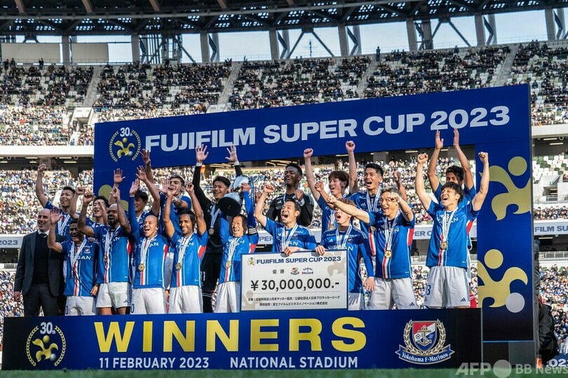 【2月12日 AFP】サッカーの富士フイルム・スーパーカップ(FUJIFILM SUPER CUP 2023)が11日、東京・国立競技場(Japan National Stadium)で行われ、昨季Jリーグ1部(J1)王者の横浜F・マリノス(Yokohama F Marinos)が昨季天皇杯(102nd Emperor's Cup)王者のヴァンフォーレ甲府(Ventforet Kofu)を2-1で下し優勝した。(c)AFP