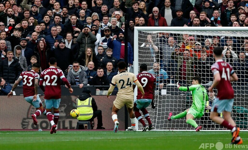 またチェルシー(Chelsea)は1-1でウェストハム(West Ham)と引き分け、リーグ戦ここ3試合で勝利から遠ざかっている。ジョアン・フェリックス(Joao Felix)の加入後初ゴールで先制したチェルシーだったが、エメルソン・パルミエリ(Emerson Palmieri)に同点弾を許した。(c)AFP