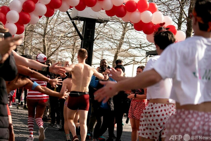 【2月12日 AFP】米首都ワシントンで11日、チャリティーイベント「キューピッツ・アンディー・ラン(Cupid's Undie Run)」が開催され、下着姿の参加者が街中を走った。
