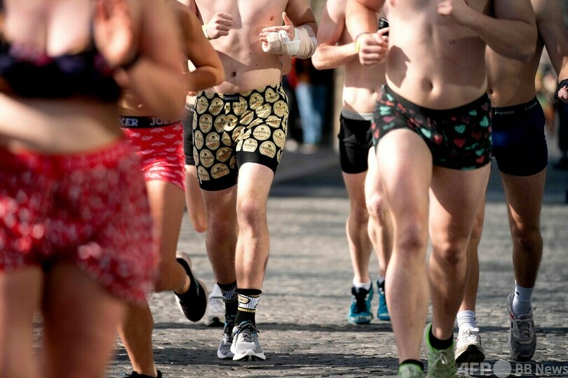 【2月12日 AFP】米首都ワシントンで11日、チャリティーイベント「キューピッツ・アンディー・ラン(Cupid's Undie Run)」が開催され、下着姿の参加者が街中を走った。
