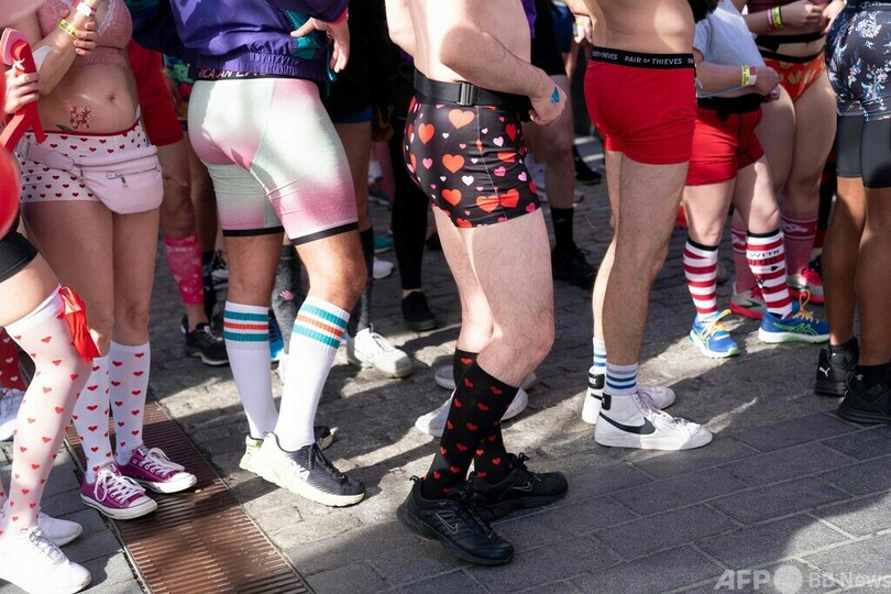 【2月12日 AFP】米首都ワシントンで11日、チャリティーイベント「キューピッツ・アンディー・ラン(Cupid's Undie Run)」が開催され、下着姿の参加者が街中を走った。
