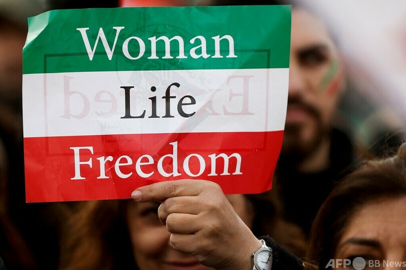 イランでは昨年、頭髪を覆うスカーフを適切に着用していなかったとして逮捕された女性が死亡。これを受けて世界各地でイラン政府や革命防衛隊に対する抗議の声が上がった。(c)AFP