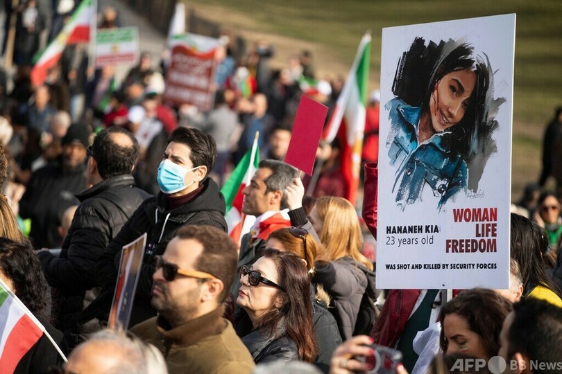 イランでは昨年、頭髪を覆うスカーフを適切に着用していなかったとして逮捕された女性が死亡。これを受けて世界各地でイラン政府や革命防衛隊に対する抗議の声が上がった。(c)AFP