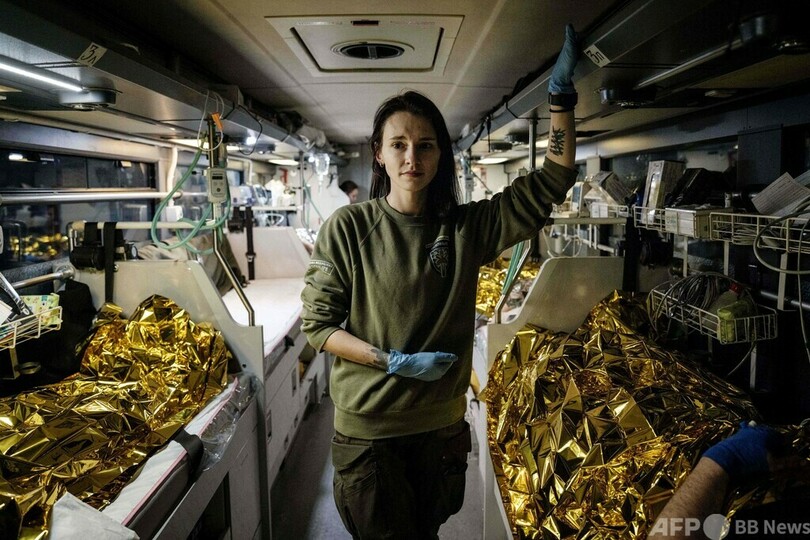 バスは、昨年6月に医療救助バス乗車中に殉職したオーストリア在住のウクライナ人医師のコールサインにちなみ、「オーストリアン」と呼ばれている。(c)AFP