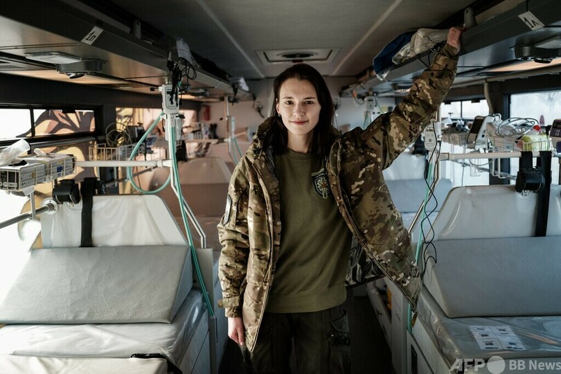 バスは、昨年6月に医療救助バス乗車中に殉職したオーストリア在住のウクライナ人医師のコールサインにちなみ、「オーストリアン」と呼ばれている。(c)AFP