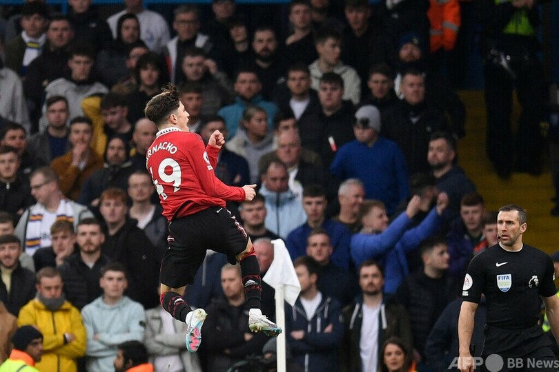 80分にラシュフォードが先制点を挙げたマンチェスター・ユナイテッドは、その5分後に途中出場のアレハンドロ・ガルナチョ(Alejandro Garnacho)が追加点を決めた。(c)AFP