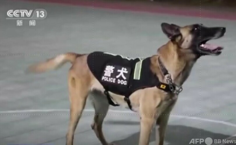 ラブラドールレトリバーの「黒壮(ヘイチワン)」は爆発物探知犬です。国家移民管理機構の主催による第1回警察犬実戦試合で団体2等賞と特別賞3等賞を受賞したことがあります。「黒壮」はこれまでに延べ1000回以上出動し、3000台以上の車両、2000点以上のスーツケース・カバンを検査し、警備・保安任務を複数回遂行し、安全保障の現場にいる頼もしい存在となっています。(c)CGTN Japanese/AFPBB News