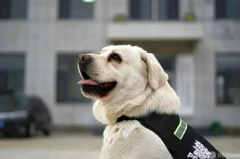 ラブラドールレトリバーの「黒壮(ヘイチワン)」は爆発物探知犬です。国家移民管理機構の主催による第1回警察犬実戦試合で団体2等賞と特別賞3等賞を受賞したことがあります。「黒壮」はこれまでに延べ1000回以上出動し、3000台以上の車両、2000点以上のスーツケース・カバンを検査し、警備・保安任務を複数回遂行し、安全保障の現場にいる頼もしい存在となっています。(c)CGTN Japanese/AFPBB News