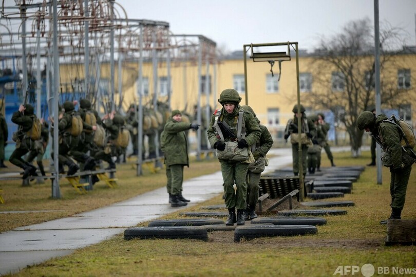 【2月19日 AFP】欧州連合(EU)加盟国であるポーランド国境からわずか4キロ、ウクライナ国境から50キロの位置にあるベラルーシ・ブレスト(Brest)の郊外にある軍基地では、特殊部隊が森林地帯での戦闘訓練を行い、装置を使って空挺(くうてい)部隊が航空機から降下する模擬訓練を行っていた。