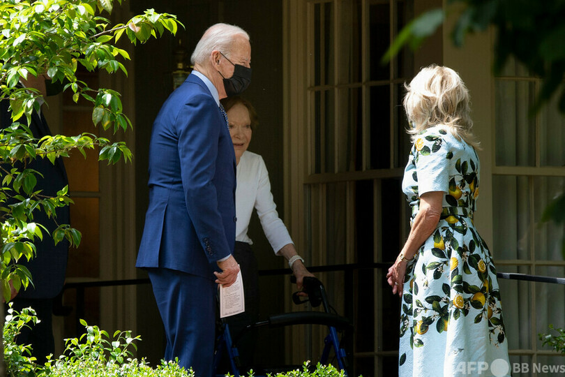 バイデン夫妻は2021年4月、カーター氏の自宅で夫妻と面会していた。(c)AFP