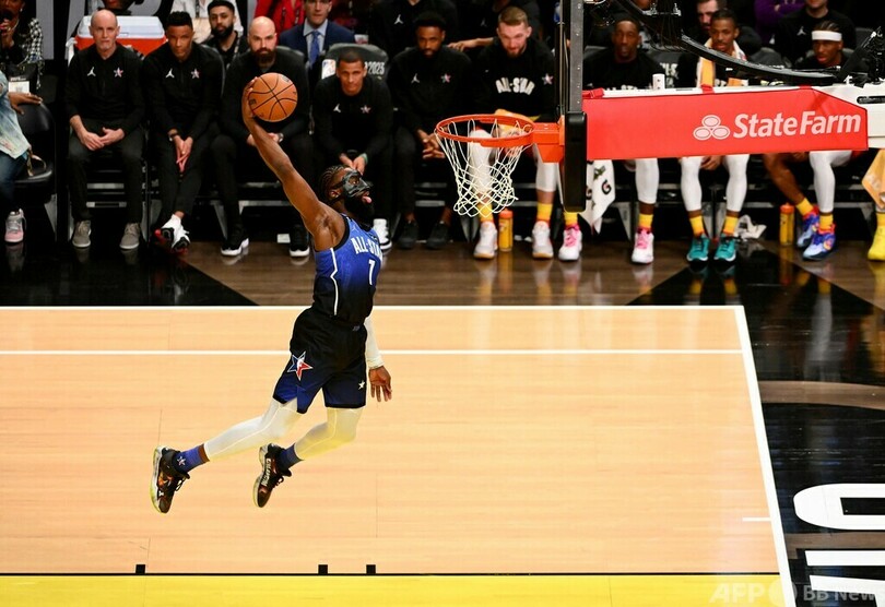 そして、お互いに目標の182点を目指す中で、チームヤニスはテイタムが記録を更新する53点目のフリースローを決めて177-162でリードを保つと、さらにテイタムのレイアップで181-170と勝利まであと1点に迫り、その後ダミアン・リラード(Damian Lillard)が3ポイントを決めて白星をつかんだ。(c)AFP