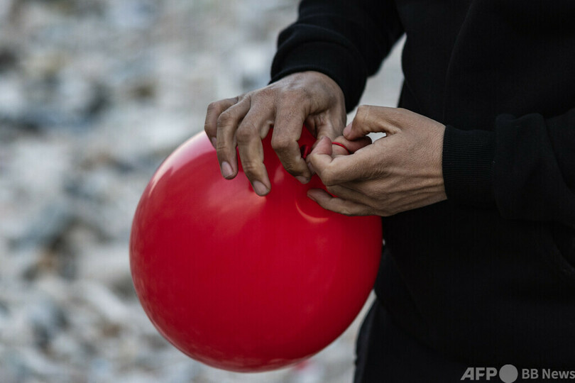 震災前から恵まれない子どもを支援してきたオグン・セベル・オクルさんが、亡くなった子どもたちへの最後のプレゼントという思いを込めた。赤色の風船には「喜びや愛」との意味合いがあるという。(c)AFP