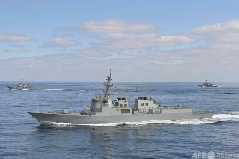 海自は「日米韓は、地域の安全保障上の課題に対応するため緊密に連携し、あらゆる事態に対処するため、万全の態勢を維持しています」とツイッター(Twitter)に投稿した。(c)AFP