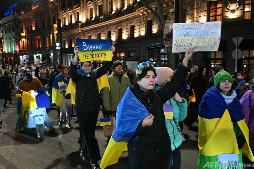 デモに参加した20歳の学生は「ウクライナの勝利はジョージア、そして文明世界全体の勝利でもある。ウクライナ人は今、われわれ全員のために血を流している」と話した。