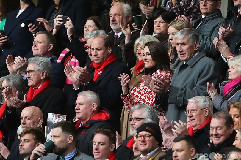 【2月26日 AFP】英国のウィリアム皇太子(Prince William)と妻のキャサリン皇太子妃(Catherine, Princess of Wales)は25日、ウェールズ・カーディフのプリンシパリティ・スタジアム(Principality Stadium)で行われたラグビーシックスネーションズ(Six Nations Rugby 2023)第3節、ウェールズ対イングランド戦を観戦した。(c)AFP