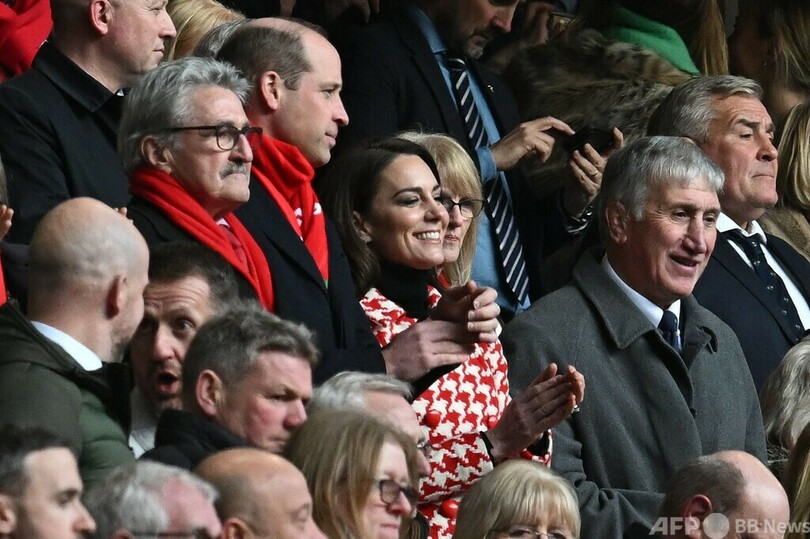 【2月26日 AFP】英国のウィリアム皇太子(Prince William)と妻のキャサリン皇太子妃(Catherine, Princess of Wales)は25日、ウェールズ・カーディフのプリンシパリティ・スタジアム(Principality Stadium)で行われたラグビーシックスネーションズ(Six Nations Rugby 2023)第3節、ウェールズ対イングランド戦を観戦した。(c)AFP