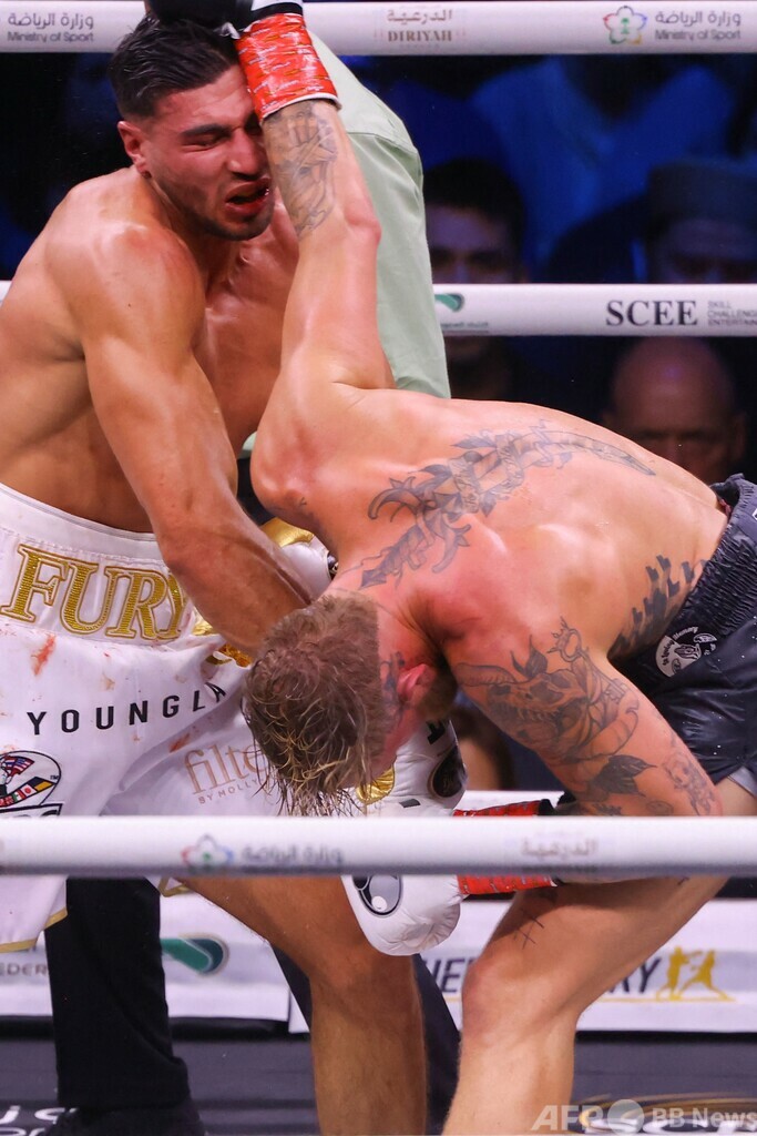 【2月27日 AFP】ボクシング、WBC世界ヘビー級王者のタイソン・フューリー(Tyson Fury、英国)の異母弟トミー・フューリー(Tommy Fury、英国)と、ユーチューバーでプロボクサーのジェイク・ポール(Jake Paul、米国)によるクルーザー級の一戦が27日、サウジアラビアのディルイーヤ(Diriyah)で行われ、フューリーが判定の末2-1で勝利した。