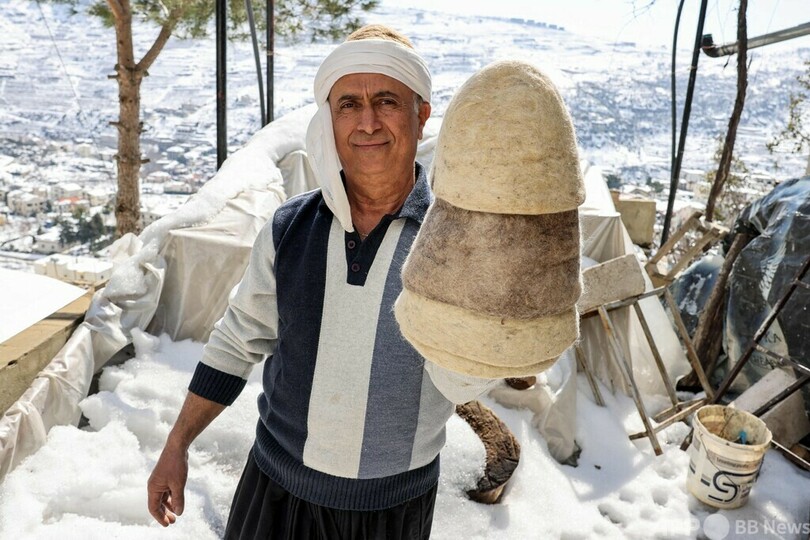 【3月12日 AFP】中東レバノンの雪深い山の中。ユスフ・アキーキさん(60)は、千年続く伝統的な羊毛を使った帽子「ラッバーデ」を作っている。