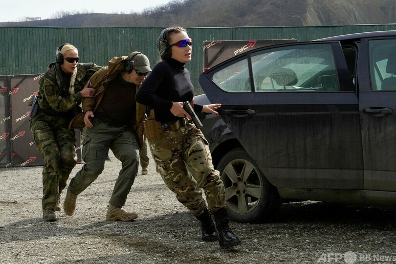 【2月28日 AFP】ロシア南部チェチェン(Chechnya)共和国グデルメス(Gudermes)にあるロシア特殊部隊大学(University of Special Forces)で27日、初の女性ボディーガード訓練が行われた。(c)AFP