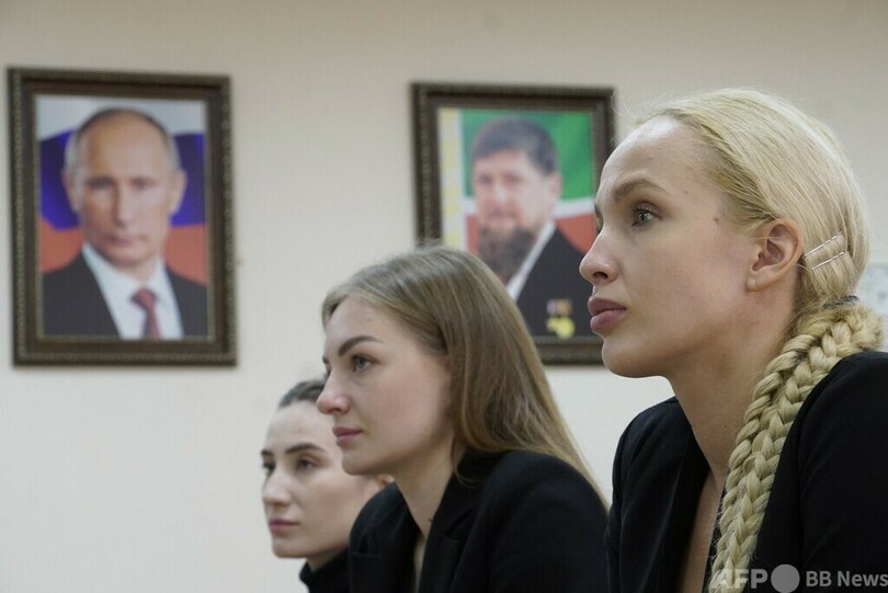 【2月28日 AFP】ロシア南部チェチェン(Chechnya)共和国グデルメス(Gudermes)にあるロシア特殊部隊大学(University of Special Forces)で27日、初の女性ボディーガード訓練が行われた。(c)AFP