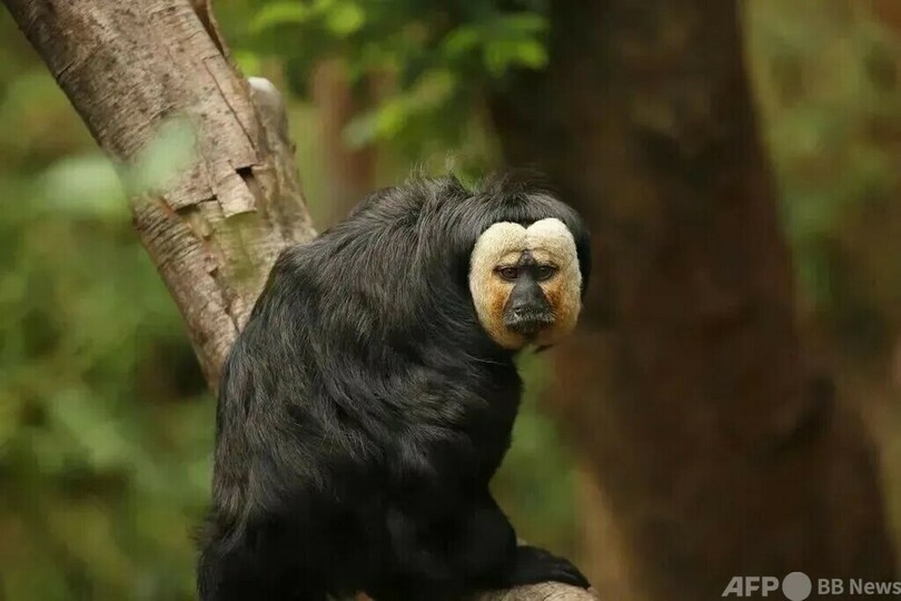 実はシロガオサキは非常に賢い動物で、人間の行動を模倣することに長けています。また、見た目は毛でふわふわしていますが、体型は意外ととても小さく、体重はわずか1~2キロです。雄と雌の外見には大きな差があり、容易に判別できます。雄は全身の毛が黒く、顔の部分が白色であるのに対し、雌は全身がまだらな茶色で、体型も比較的小さいということです。(c)CGTN Japanese/AFPBB News