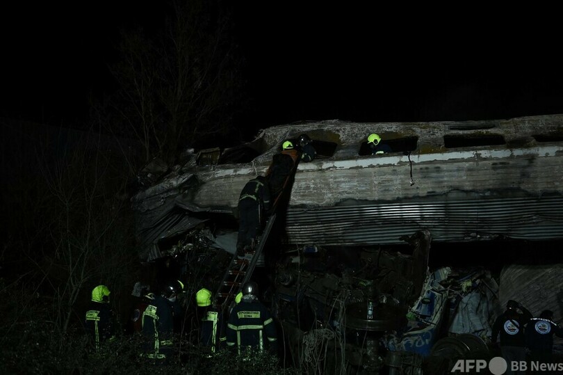 【3月1日 AFP】(写真追加)ギリシャで2月28日夜、首都アテネと北部テッサロニキ(Thessaloniki)の間で列車が衝突・脱線し、地元消防当局によると、少なくとも26人が死亡、85人が負傷した。