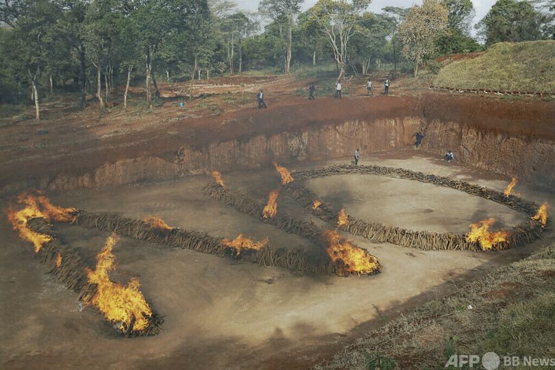 【3月2日 AFP】ケニアの首都ナイロビでこのほど、違法に伐採された希少な香木、イーストアフリカンサンダルウッドが焼却処分された。