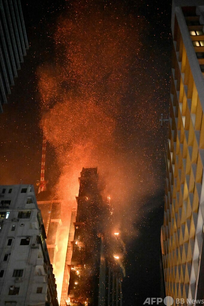 【3月3日 AFP】香港の繁華街・観光地の尖沙咀(Tsim Sha Tsui)地区の中心部で2日夜、建設中の42階建ての高層ビルで火災が発生した。当局によると、出火から9時間後の午前8時半までにほぼ鎮火した。