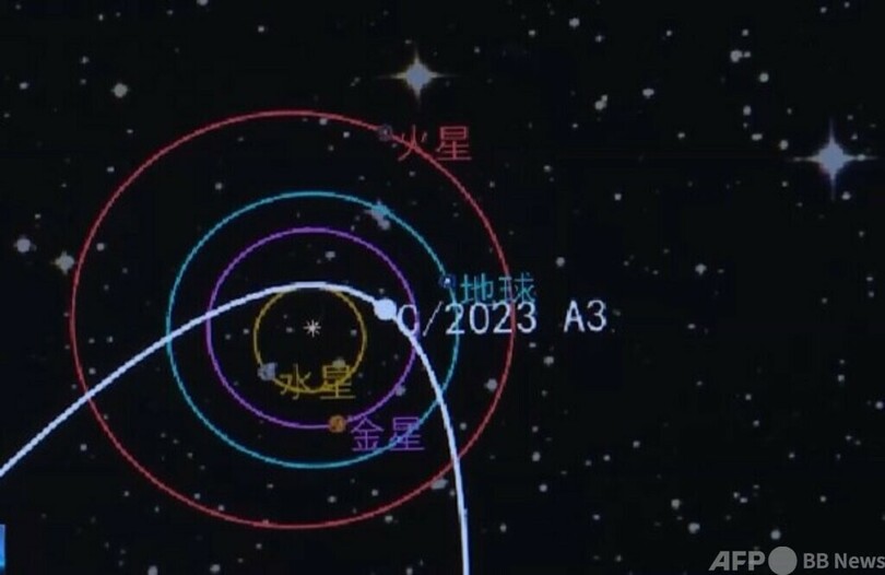 専門家は、地球の運行軌道は黄道(天球上における太陽の見かけ上の通り道)面にあり、同彗星が運行する軌道と黄道面は40度以上の角度差があるため、地球軌道を通過しても、大惑星が地球と衝突することはないと分析しています。また注目すべきは、同彗星の軌道が極めて特殊な楕円形をしており、約6万年に一度しか観測機会がないため、非常に期待できるものだということです。(c)CGTN Japanese/AFPBB News