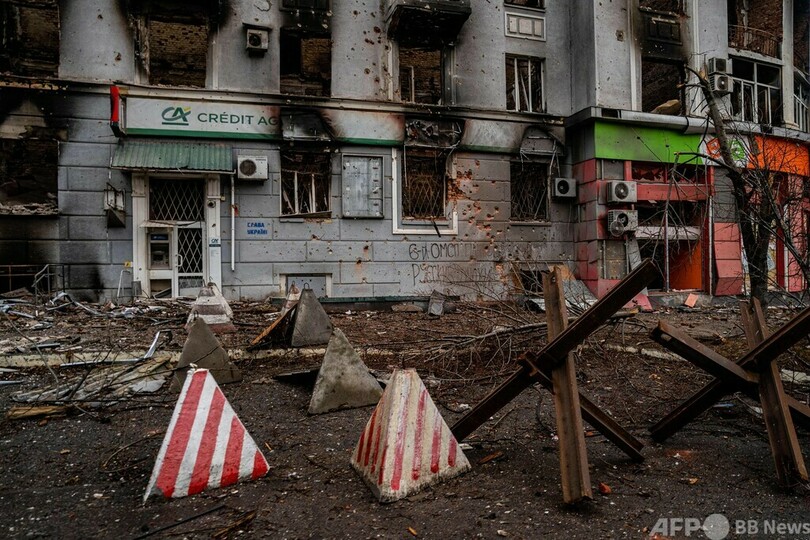 かつて塩採掘とスパークリングワインの街として知られたバフムートは、ウクライナ侵攻で最も長く、激しい戦闘の舞台となっている。(c)AFP