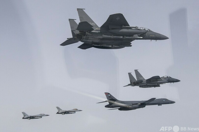 ニュース 政治・経済 米韓空軍、韓国上空で合同訓練 米戦略爆撃機も参加 2023年3月4日 14:01 発信地:ソウル/韓国 [ 韓国 韓国・北朝鮮 米国 北米 ] このニュースをシェア ‹ › ❮ 1/8 ❯ 韓国上空で米韓両空軍が実施した合同訓練(2023年3月3日撮影、提供)。(c)AFP PHOTO / South Korean Defence Ministry 画像作成中 ! 【3月4日 AFP】米韓両空軍は3日、韓国上空で合同訓練を実施した。韓国国防省が同日、明らかにした。 米空軍からはB1B戦略爆撃機が、韓国空軍からはF15K戦闘機とKF16戦闘機が参加した。(c)AFP 政治・経済 一覧へ> メディア・報道関係・法人の方向け 写真・動画 購入のお問合せ>